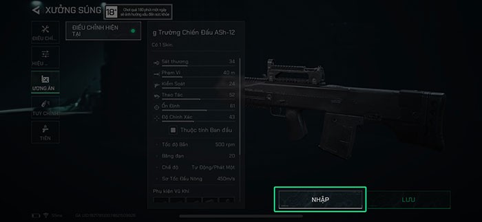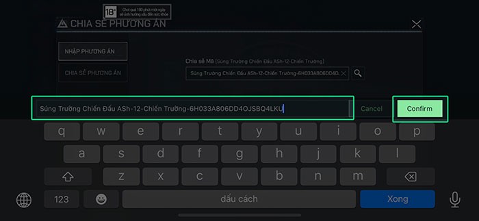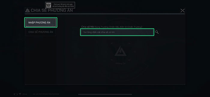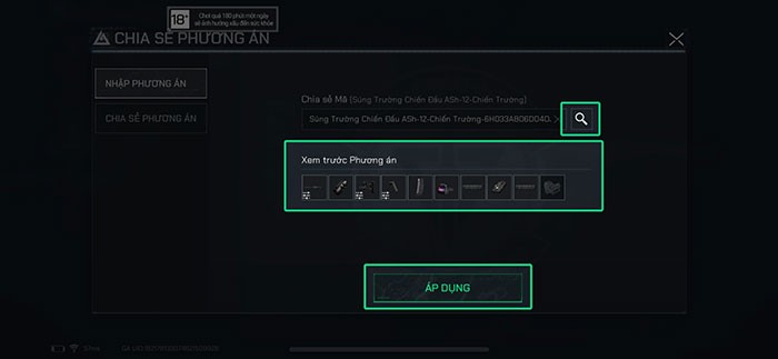 Bước 6: Tại cửa sổ hiện ra, chọn Nhập phương án và dán mã thiết lập súng vào ô văn bản để nhập cấu hình từ người chơi khác.
