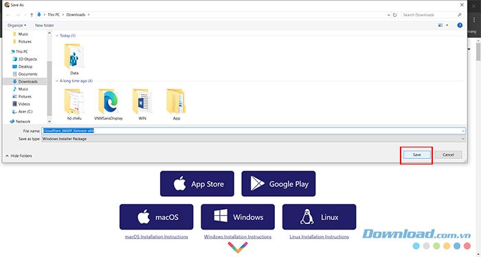 Bước 2: Chọn thư mục lưu trữ file cài đặt và nhấn Save để bắt đầu quá trình tải xuống.