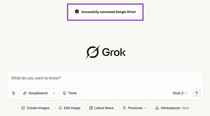 Sau khi đăng nhập thành công, cửa sổ sẽ tự động đóng lại. Grok Studio sẽ gửi thông báo xác nhận, báo hiệu việc tích hợp đã được hoàn tất.