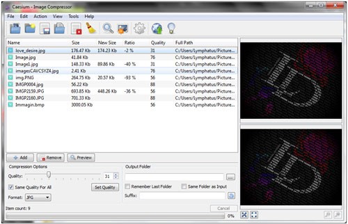 Caesium Portable là một chương trình nén ảnh mạnh mẽ, có khả năng giảm dung lượng ảnh lên đến 90% mà vẫn duy trì gần như nguyên vẹn chất lượng và độ phân giải ban đầu.