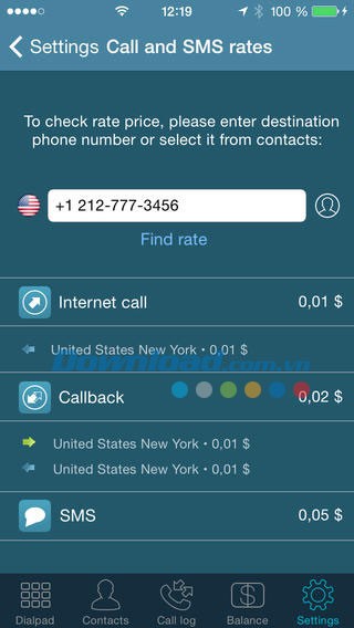 Bạn có thể ước tính chi phí cuộc gọi đến các quốc gia khác nhau trực tiếp trong ứng dụng Callbacker.