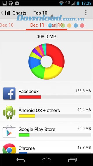 Ứng dụng giúp quản lý dung lượng sử dụng của dữ liệu di động, wifi và 3G/4G. Đồng thời, ứng dụng theo dõi các ứng dụng tiêu tốn nhiều dữ liệu nhất, cung cấp thống kê chi tiết và cho phép xuất dữ liệu gói cước sang Excel.