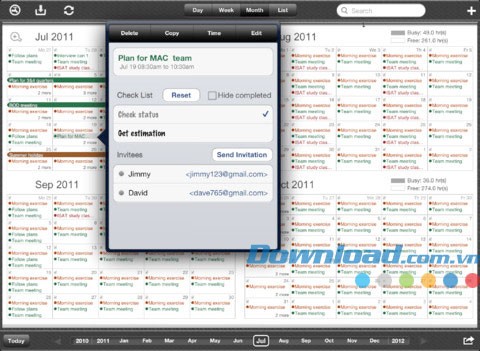 Thông tin về sự kiện sẽ được đồng bộ trực tiếp với lịch Google, đồng thời tương thích với lịch iPad. Nhờ đó, người dùng có thể dễ dàng đồng bộ dữ liệu với Outlook, Mobile Me, và lịch Google ở cả hai chế độ tự động và thủ công.