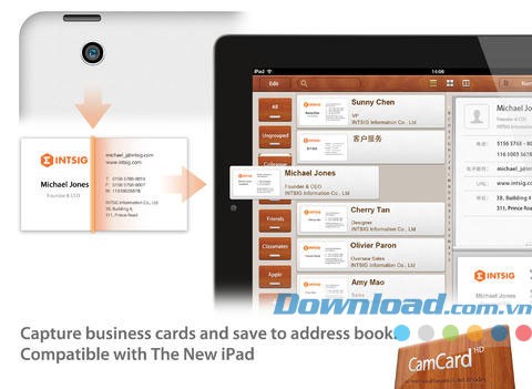 CamCard HD Free for iPad mang đến cho người dùng một ứng dụng đọc danh thiếp chuyên nghiệp, hoàn toàn không mất phí, được thiết kế dành riêng cho máy tính bảng iPad.