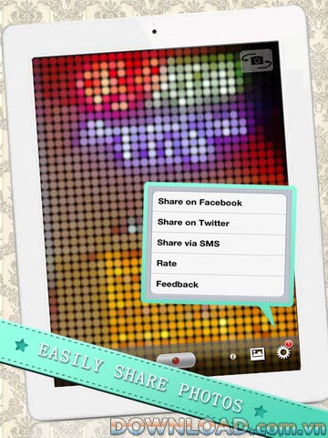 Chia sẻ ảnh và video một cách nhanh chóng đến bạn bè và người thân thông qua các nền tảng phổ biến như Facebook, Twitter, Flickr, tin nhắn SMS và email.
