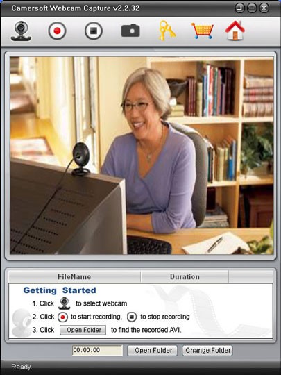 Bạn có thể bắt đầu quá trình ghi âm bằng cách nhấn vào nút chức năng. Camersoft Webcam Capture sẽ hiển thị thời lượng video, cùng với tên và vị trí của tệp AVI đầu ra.