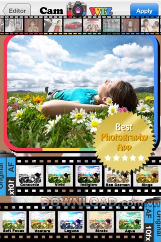 Ứng dụng cung cấp một loạt các bộ lọc ảnh độc đáo, bao gồm Soft Focus, Ventura, Laguna, Strato, Aqua, Concord, Vivid, Indiglow, San Carmen và Singe, cho phép người dùng tùy biến ảnh theo sở thích.