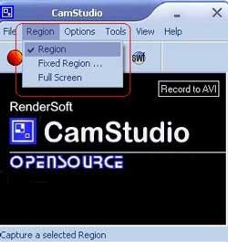 Bạn có thể thiết lập kích thước khung hình ghi hình bằng cách chọn tùy chọn Region trong giao diện chương trình.