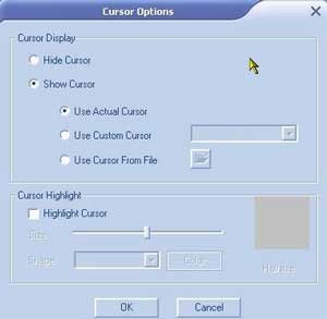 Để ẩn con trỏ chuột, đánh dấu vào tùy chọn Hide Cursor. Để hiển thị con trỏ chuột hiện tại, chọn Use Actual Cursor. Bạn cũng có thể chọn một con trỏ chuột khác từ danh sách của chương trình (Use Custom Cursor) hoặc từ file trên máy tính (Use Cursor from file).