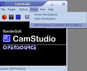 Ngoài ra, CamStudio còn có thể chuyển đổi định dạng file từ AVI sang SWF và tạo file HTML để chia sẻ đoạn phim trên Internet. Tại giao diện chính, chọn ToolsSWF Producers (Convert AVI to Flash).