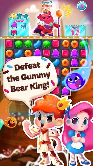 Tham gia vào chế độ Battle, nơi bạn sẽ đối đầu trực tiếp với tên bạo chúa Gummy Bear đầy thách thức. Hãy nhanh chóng tạo ra chuỗi kẹo từ 4 hoặc 5 viên để đánh bại hắn và bảo vệ vương quốc kẹo ngọt.