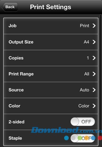Ứng dụng cho phép kiểm tra các cài đặt in và dữ liệu đang chờ xử lý trên thiết bị đa chức năng hoặc máy in.