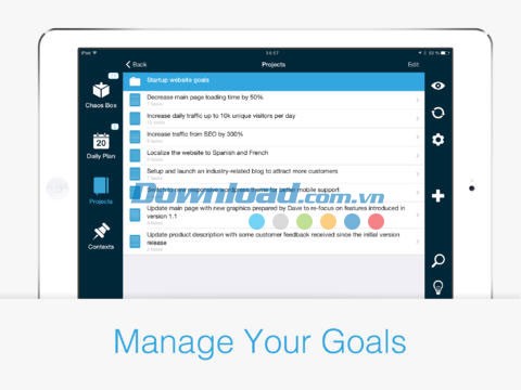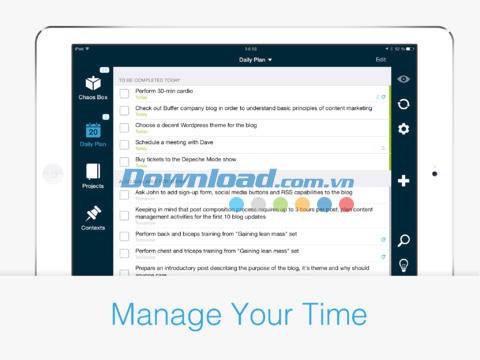 Chaos Control for iOS kết hợp sức mạnh của GTD (Getting Things Done) và kinh nghiệm quản lý nhiệm vụ thực tế với giao diện người dùng trực quan, thông minh, mang đến giải pháp tối ưu cho nhiều công việc khác nhau: