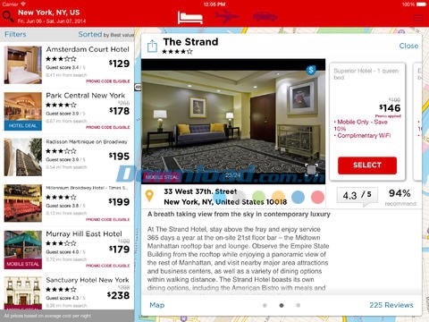 Bên cạnh đó, ứng dụng còn mang đến các ưu đãi khách sạn độc quyền dành riêng cho thiết bị di động, với mức giảm giá lên đến 50% cho các đêm nghỉ đơn lẻ hoặc kỳ nghỉ dài ngày tại những điểm đến du lịch nổi tiếng trên toàn thế giới.