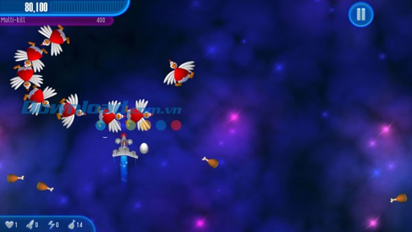 Hãy tập trung vào việc bắn gà bằng cách chạm tay vào màn hình, đồng thời kéo ngón tay để di chuyển máy bay, tránh những quả trứng gà hoặc các cuộc tấn công trực diện từ lũ gà liều mạng.