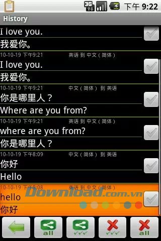 Bạn có thể chia sẻ bản dịch qua tin nhắn SMS, Email, Twitter hoặc các ứng dụng nhắn tin, mạng xã hội khác.
