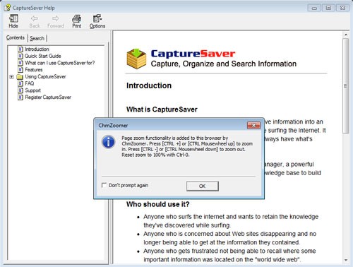 ChmZoomer ra đời để giải quyết vấn đề này, mang đến khả năng phóng to toàn trang cho nhiều ứng dụng khác nhau, bao gồm các file Chm, sách điện tử, trình đọc RSS,…