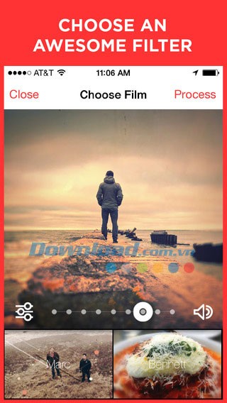 Cinamatic cung cấp một loạt các bộ lọc video đa dạng, giúp bạn tạo ra những bộ phim với nhiều phong cách và tông màu khác nhau. Chọn bộ lọc yêu thích và xem trước kết quả ngay lập tức. Sau khi hài lòng, nhấn Process để áp dụng các thay đổi.