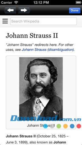 Cung cấp thông tin về nghệ sĩ thông qua liên kết đến Wikipedia .