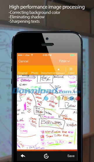 Ứng dụng cung cấp đa dạng các tùy chọn xử lý phù hợp với nhiều loại tài liệu khác nhau, bao gồm ảnh, tài liệu văn bản, bảng trắng, giấy đen trắng và ảnh màu.