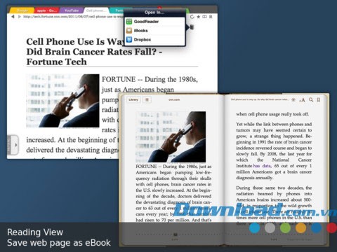 CloudSurfer Free là trình duyệt duy nhất có khả năng lưu trữ các trang web dưới định dạng eBook, cho phép người dùng đọc chúng trong iBook hoặc các ứng dụng đọc eBook khác. Việc đọc trang web trở nên tiện lợi như đọc một cuốn sách điện tử thông thường trên iPad. Các eBook đã lưu có thể được truy cập mọi lúc, kể cả khi không có kết nối internet, và hình ảnh trên trang sẽ được hiển thị đầy đủ.