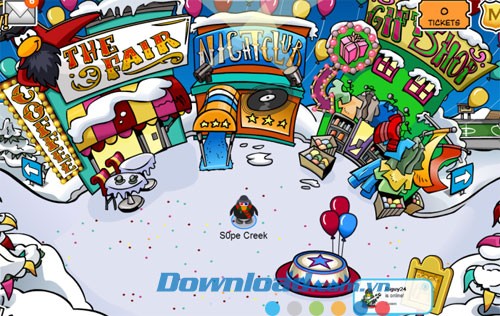 Người chơi bắt đầu hành trình khám phá Club Penguin bằng cách tạo hình đại diện chim cánh cụt cho riêng mình, mở ra một không gian giải trí đầy màu sắc.