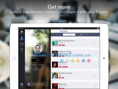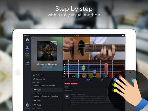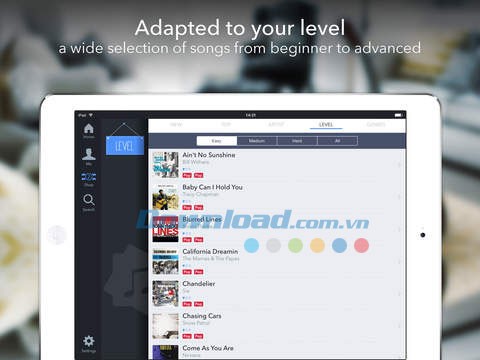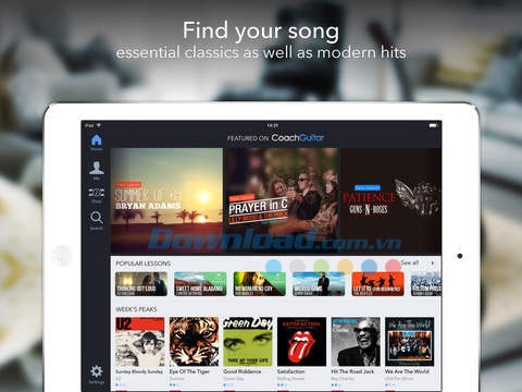Chỉ cần tải và cài đặt Coach Guitar miễn phí trên iPhone hoặc iPad, bạn có thể bắt đầu luyện tập những bản hit guitar nổi tiếng thế giới mọi lúc, mọi nơi. Tự do chọn lựa những bài hát yêu thích và nhanh chóng học cách chơi để trình diễn trong các buổi giao lưu.