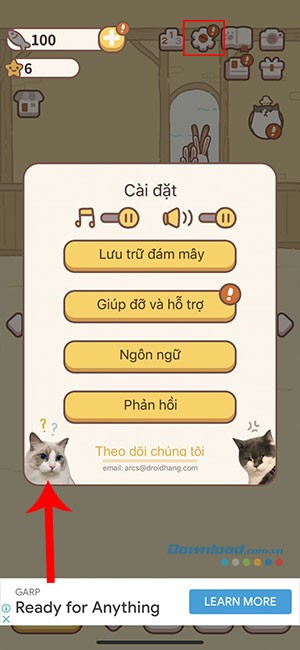 Sau đó, bạn hãy chạm vào hình chú mèo trắng với hai dấu hỏi chấm được hiển thị.