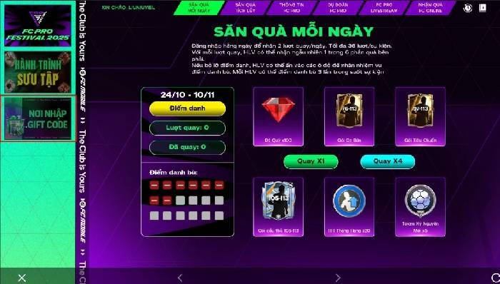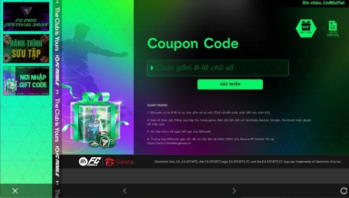 Việc đổi mã quà tặng trong FC Mobile VN được thực hiện một cách dễ dàng nhờ tính năng nhập code trực tiếp trong trò chơi. Để tiến hành nhập code, bạn hãy làm theo các bước hướng dẫn chi tiết sau: