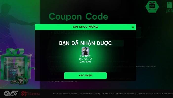 Bước 4: Khi nhập code thành công, hệ thống sẽ thông báo và bạn có thể nhận ngay phần thưởng.