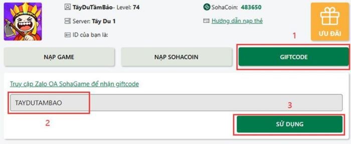 Việc nhập giftcode Tây Du Tầm Bảo của SohaGame để nhận thưởng là một quá trình dễ dàng. Tuy nhiên, người chơi cần thực hiện thao tác này trên trang web đổi thưởng chính thức của SohaGame, theo các bước hướng dẫn chi tiết sau: