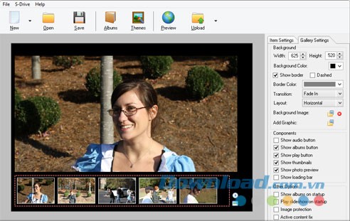 Hãy sử dụng nút Preview trên thanh công cụ để xem trước giao diện của album vừa tạo. Nếu bạn hài lòng với kết quả, nhấn Save để lưu album và chọn vị trí lưu trữ. Cuối cùng, nhấn Upload Now và làm theo các bước hướng dẫn để tải album lên website của bạn.