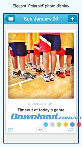 Chế độ hiển thị ảnh dưới dạng bưu thiếp độc đáo sẽ tạo nên một bản ghi hoàn hảo cho mỗi ngày. Ngày tháng và chú thích ảnh được hiển thị ở mặt trước, trong khi ghi chú chi tiết được lưu trữ ở mặt sau.