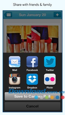 Người dùng có thể trực tiếp chia sẻ ảnh hoặc bộ lịch ảnh lên nền tảng mạng xã hội Instagram phổ biến.