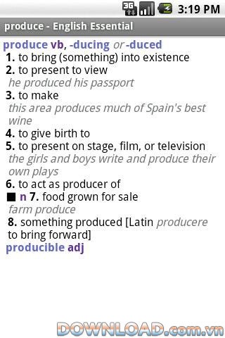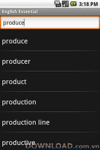 Với số lượng từ vựng đồ sộ, Collins English Essential TR for Android đáp ứng nhu cầu tra cứu của nhiều đối tượng người dùng, từ học sinh, sinh viên đến những người làm việc trong lĩnh vực chuyên môn.