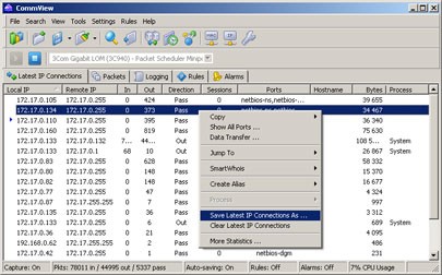 Với CommView, người dùng có thể dễ dàng theo dõi danh sách các kết nối mạng IP và các số liệu thống kê liên quan. Phần mềm cho phép kiểm tra chi tiết từng gói dữ liệu riêng lẻ.