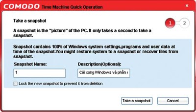 Tuy nhiên, cần lưu ý rằng khi thử nghiệm cài đặt Comodo Time Machine trên Windows XP trong máy tính cài song song Windows XP và Windows Vista, người viết đã gặp phải một số lỗi trong Windows XP, thậm chí khiến Windows Vista không thể khởi động được. Do đó, tốt nhất bạn chỉ nên cài đặt Comodo Time Machine trên máy tính sử dụng một hệ điều hành Windows duy nhất.