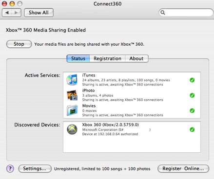 Connect360 có khả năng tự động liên kết và đồng bộ hóa dữ liệu thư viện iTunes cùng iPhoto, sau đó chia sẻ thông tin này với tài khoản Xbox 360 của người dùng.