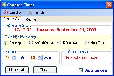 Chỉ cần thiết lập thời gian hẹn trước, Counter-Timer sẽ tự động tắt máy tính, khởi động lại hệ thống, đưa máy vào chế độ ngủ đông, hoặc đăng xuất khỏi tài khoản người dùng hiện tại.