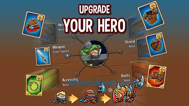 Nâng cấp anh hùng là yếu tố then chốt để chiến thắng. Hãy thu thập vật phẩm sau mỗi trận chiến và xây dựng một đội quân hùng mạnh.