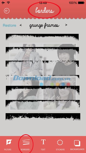 Bộ lọc được áp dụng đồng loạt cho tất cả ảnh trong khung hình, không cho phép tùy chỉnh riêng cho từng ảnh.