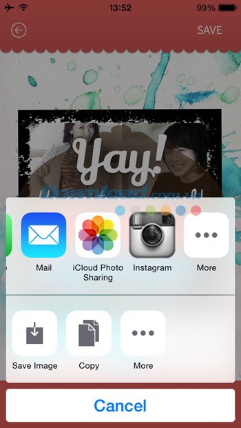 Người dùng có thể chia sẻ ảnh đã chỉnh sửa qua Email, tin nhắn hoặc các nền tảng mạng xã hội khác.