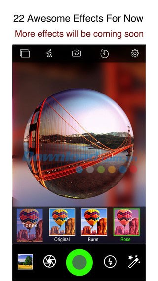 CrystalCam for iOS mang đến trải nghiệm chụp ảnh độc đáo với bộ sưu tập ống kính hình cầu tinh thể, mắt cá, lens tinh thể trong suốt và đèn flash đa sắc màu.