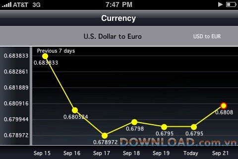 Một điểm độc đáo của Currency Exchange là khả năng hiển thị tỷ giá đảo ngược một cách tiện lợi. Ví dụ, khi chuyển đổi từ USD sang EUR, chỉ cần xoay thiết bị, tỷ giá EUR sang USD sẽ được hiển thị ngay lập tức.