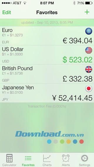 Chỉ cần chọn bất kỳ đơn vị tiền tệ nào trong danh sách yêu thích, nhập giá trị mong muốn, và ứng dụng sẽ tự động hiển thị tổng số tiền tương ứng với các đơn vị khác trong danh sách theo thời gian thực.