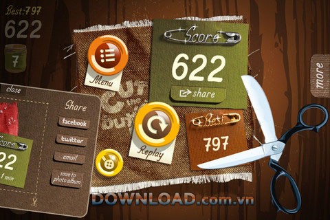 Hiệu ứng đồ họa chân thực mang đến cảm giác như bạn đang thực sự cầm một chiếc kéo trên tay. Chiếc kéo này đóng vai trò quan trọng, giúp bạn điều chỉnh hướng rơi của các nút trước khi chúng bị cắt.
