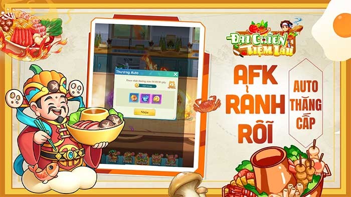 Ngay khi đăng nhập vào Đại Chiến Tiệm Lẩu, bạn sẽ nhận được Tôn Ngộ Không miễn phí. Thêm vào đó là 100 lượt rút, 300 rương ngô và nhiều vật phẩm giá trị khác, giúp bạn dễ dàng nâng cấp đội hình tướng của mình.