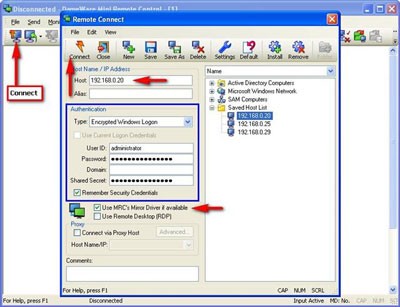 Khi khởi động DWMRC, cửa sổ chính của chương trình và hộp thoại Remote Connect sẽ xuất hiện. Hộp thoại Remote Connect dùng để thêm, chỉnh sửa các kết nối đã lưu. Để tạo kết nối mới, thực hiện các bước sau: