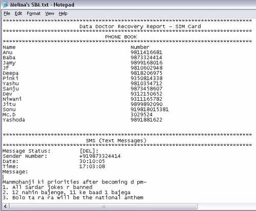Phần mềm Data Doctor Recovery - SIM Card có khả năng khôi phục các loại dữ liệu đã bị xóa khỏi SIM Card, bao gồm: danh bạ điện thoại, tin nhắn SMS trong hộp thư đến và đã gửi, cùng một số thông tin cá nhân của SIM như nhà cung cấp dịch vụ. Chương trình hỗ trợ xuất dữ liệu phục hồi được ra định dạng văn bản.