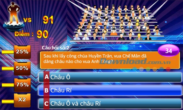 Độ khó của câu hỏi (dễ hoặc khó) do người chơi chính quyết định.